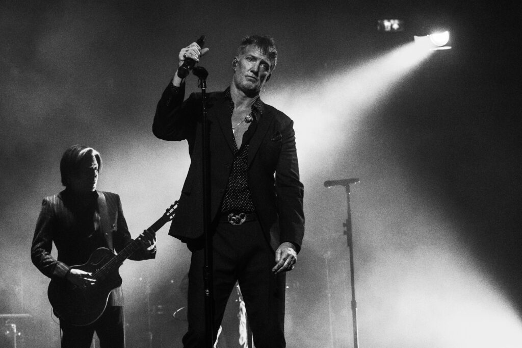 The lights dropped. A single bulb flickered. Homme appeared, cigarette glow barely cutting through the dark, and with a slow grin said it all: this wasn’t your typical desert-rock sermon. The first act bled through stripped-back renditions and eerie strings, turning Kalopsia and Long Slow Goodbye into gothic hymns. It was delicate, tense, the kind of quiet that makes your skin crawl—in the best way.