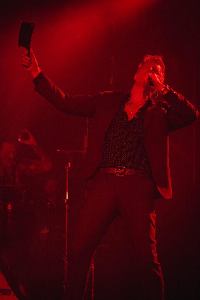 Then came the switch. Act two detonated with a sequence that twisted Someone’s in the Wolf into A Song for the Deaf—a roar that shook every Victorian panel in the room. Homme prowled the aisles like a preacher gone rogue, glass of wine in hand, a cleaver resting on his piano. At one point, he smirked: “I don’t need protection, I need affection.” The crowd howled back.